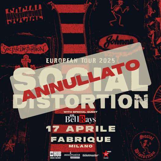 A causa di imprevisti ritardi nella produzione del prossimo album di Social Distortion, la band ha annunciato la cancellazione del tour europeo, inclusa la data a Milano prevista per il 17 aprile al Fabrique.