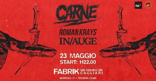 Venerdì 23 maggio al Fabrik di via Mameli a Cagliari, arriva la band pugliese dei Carne, formazione nata nel 2018 a partire da diverse esperienze dell’hardcore pugliese, tra le quali si annoverano Hobophobic, Sud Disorder, Frantic e Waiting for better days, Braccia di Kali.