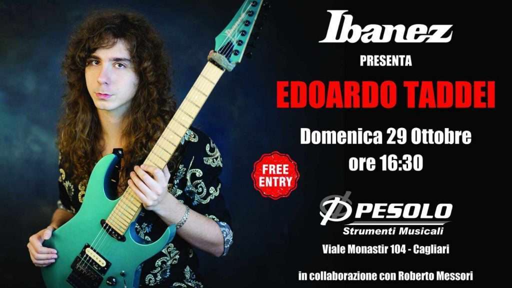 Dopo il recente tour europeo con la band Master Boot Record, Edoardo Taddei sarà a Cagliari il 29 ottobre presso Pesolo in viale Monastir 104 per una esclusiva guitar clinic in collaborazione con Ibanez Guitars e Roberto Messori.