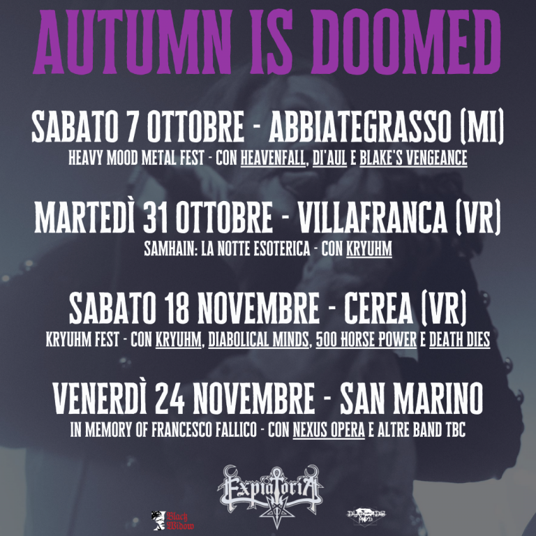 Gli Expiatoria, storica band doom metal genovese, annunciano il ritorno sul palco con 4 date nel Nord Italia tra ottobre e novembre, e sono lieti di accogliere tra le loro fila un nuovo chitarrista.