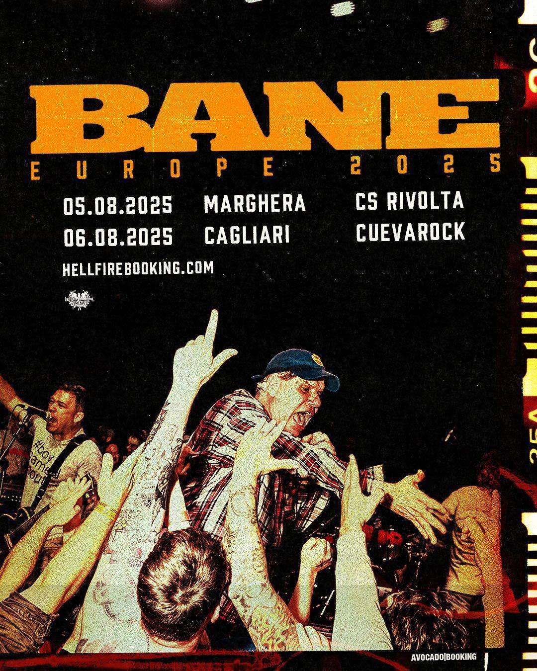 E per rendere queste due notti ancora più speciali, le sorprese non finiscono mica qui: a Marghera, i Bane saranno affiancati da Danny Trejo, Jaguero e Pushing Forward, che mirano alla distruzione più completa del Rivolta. A Cagliari invece, grazie a CuevaRock e Cagliari Hardcore, i Bane saranno i protagonisti della seconda edizione del Solar Flare Fest.