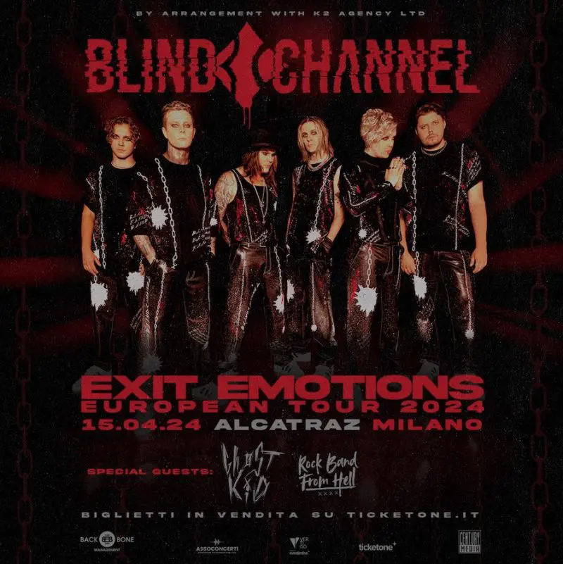 i Blind Channel annunciano oggi la leg Europea del tour a supporto del nuovo album “Exit Emotions”, disco che sarà pubblicato il prossimo anno. Prevista anche una data nel nostro Paese: la nu metal band finlandese sarà in concerto all’Alcatraz di Milano il prossimo 15 aprile 2024.