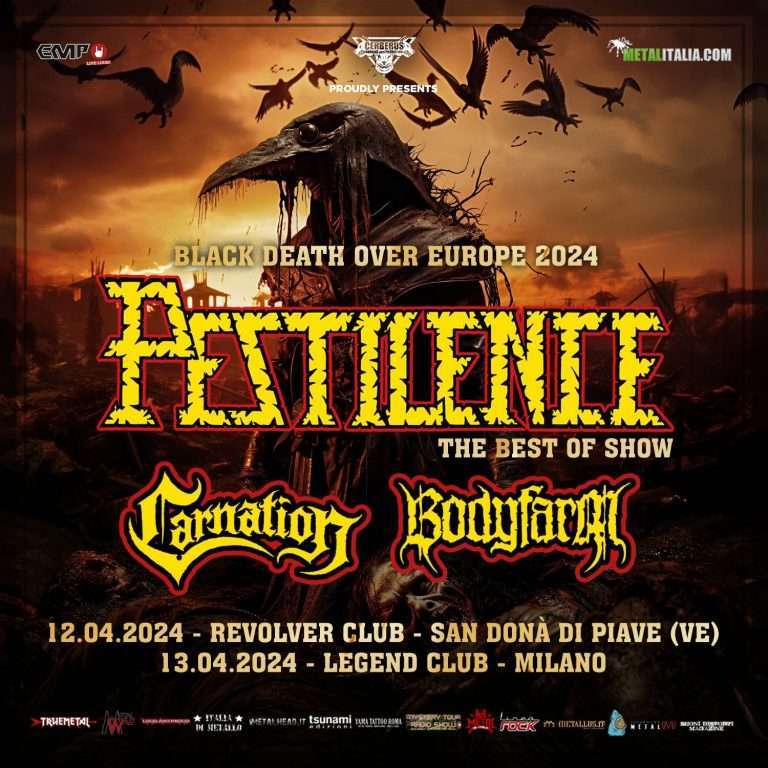 Con loro troveremo i Bodyfarm, attualmente alle prese con le date a supporto dell’ultima fatica in studio intitolata “Ultimate Abomination”, e i Carnation, anch’essi freschi di pubblicazione del loro album “Cursed Mortality”, edito da Season Of Mist.