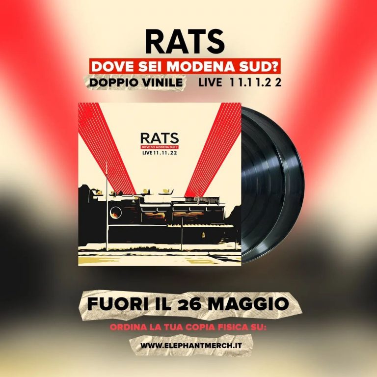 “Dove Sei Modena Sud?” Live 11.11.22 è il titolo della nuova release discografica della storica rock band dei modenesi Rats che uscirà venerdì 26 maggio per Bagana / B District Music e sarà disponibile inoltre sulle principali piattaforme streaming/digital download in Extended Edition con 4 tracce aggiuntive, distribuzione Pirames International.