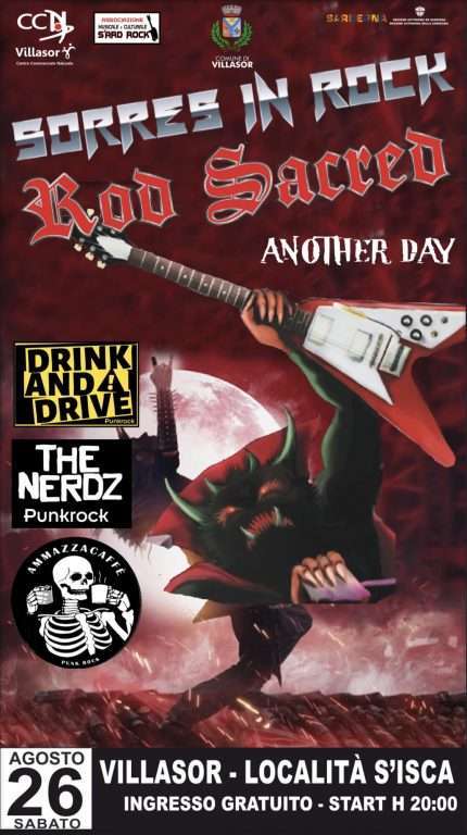 Il 26 agosto i Rod Sacred saranno nuovamente live e questa volta a Villasor a partire dalle ore 20 in località S’Isca, la line up della band vede sul palco insieme a Franco Onnis e Tonio Deriu anche Manu Pes alla chitarra e Mattia Murtas alla batteria.