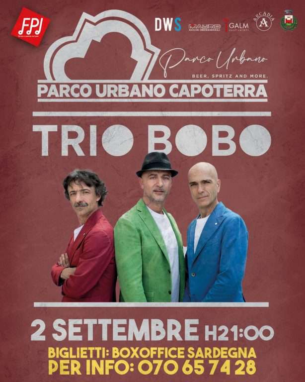 Sabato 2 settembre il TRIO BOBO  formato da Faso (basso), Menconi (chitarra) e Meyer (batteria), arriva a Capoterra per uno spettacolo unico.