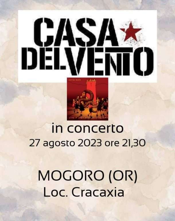 La Casa del Vento, un gruppo combact folk aretino attivo sin dai primi anni Novanta, calcherà il palco di Mogoro il prossimo 27 agosto a Mogoro.