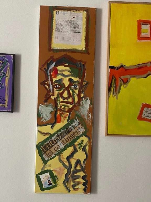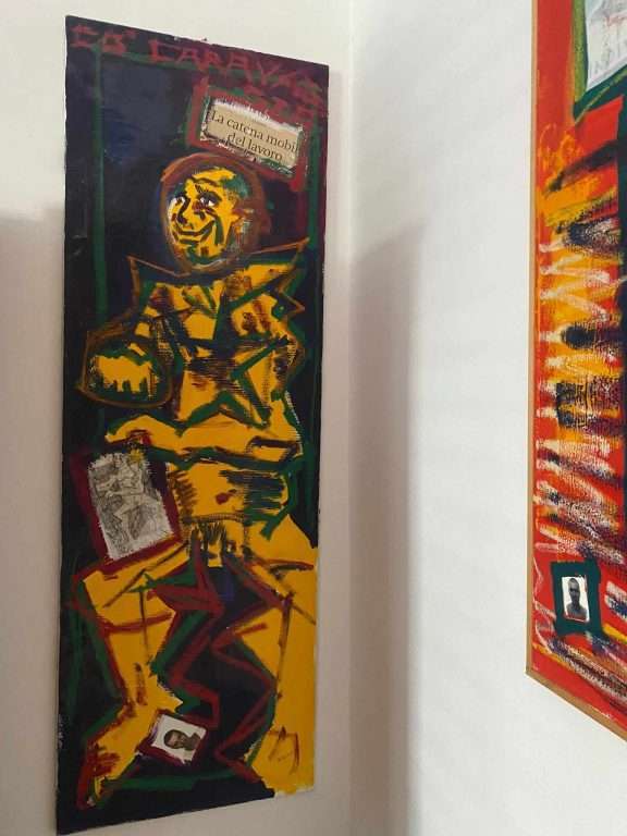 Non è nobilissimo? Custodire per più di vent’anni dei lavori e poi restituirli all’autore, pur sapendo che non avrebbe titolo giuridico per reclamarli, questo proprio nel momento in cui sto allestendo la mia casa galleria, fuori dal tempo, con lavori di quel periodo, per me introvabili, a sigillare una rimettersi in moto fuori dal tempo, questo per non parlare di ciò che c’è su quella traiettoria di ricerca: lettere, fototessere, amori passati evaporati, stralci d’ideologia politica di cui ero pregno…, insomma la possibilità di dialogare con un altro me giovane, libero di sbagliare, sdoppiarsi e dialogare con un me figlio e giovane amico…. Il nobile principe Caracciolo del Sole, Gennaro Oliviero, ex docente Universitario, ricercatore e non so quante altre cose, nel nome del pensare che davanti alla morte (a 85 anni ci si comincia a pensare), giuridicamente non avrebbe disposto del mio lavoro (non avendo eredi diretti), me l’ha restituito. La sua azione, la devozione con cui ha custodito dei miei lavori nel tempo, alcuni acquistati da terzi e altri prelevati direttamente on the road quando li negavo, abbandonavo e disperdevo, ha un altissimo valore pedagogico e didattico, se tutte le persone che hanno dei miei lavori me li restituissero, sarei in questo momento l’artista più ricco del pianeta, invece, nel naturale e morboso legame con la materia, tutti trattengono o negano, aspettando che io non ci sia, attaccati alla materia, all’investimento potenziale al guadagno.