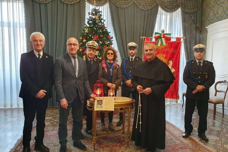 Stamattina la Luce della Pace è stata consegnata al sindaco di Sassari, Nanni Campus, dal padre guardiano Salvatore Sanna e da alcuni rappresentanti delle associazioni scout.