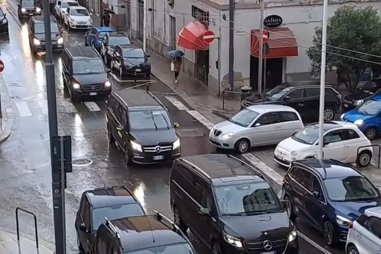 Una protesta rumorosa con i clacson suonati nelle strade del centro di Cagliari e traffico rallentato.