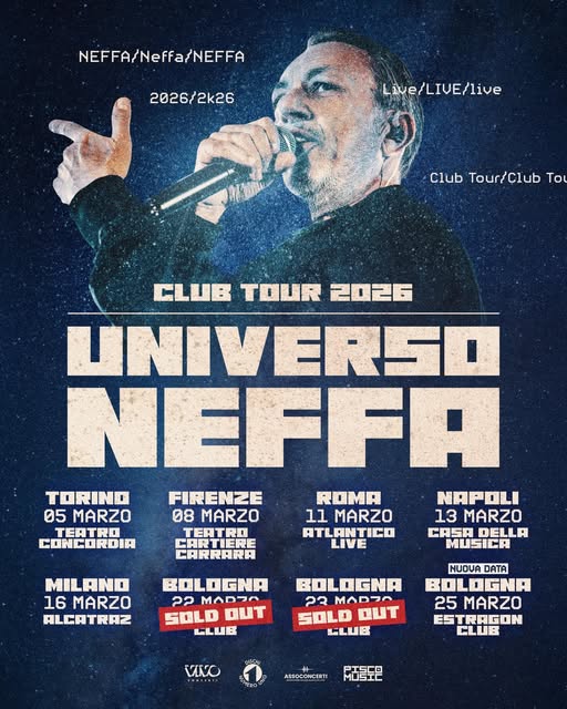 Dopo il recente concerto all’Unipol Forum di Milano, Neffa annuncia il Club Tour 2026 – Universo Neffa (Vivo Concerti), una serie di date nei principali club italiani previste per la prossima primavera.