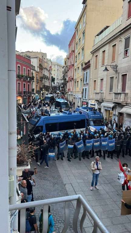 La polizia in assetto antisommossa ha più volte caricato i manifestanti , la manifestazione è stata organizzata dalla neonata “Retza de is istudiantes” e ha visto l’adesione di A Foras, Unigcom, assemblea Palestina Sassari e Unica per la Palestina.