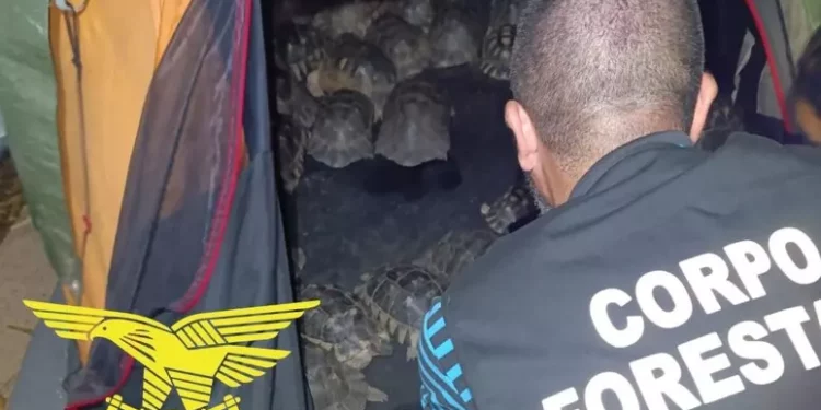 A seguito di una segnalazione al numero verde 1515, gli agenti del Corpo forestale hanno rinvenuto 54 esemplari di tartaruga marginata (testudo marginata) di diversa taglia, che erano illecitamente detenute all’interno di una tenda in un campeggio in località Capo Coda Cavallo a San Teodoro.