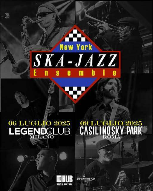 La leggendaria band americana New York Ska Jazz Ensemble torna in Italia per due appuntamenti esclusivi che faranno vibrare l’estate al ritmo travolgente di ska, jazz e reggae. Segnatevi le date: il 6 luglio a Milano al Legend Club e il 9 luglio a Roma al Casilino Sky Park. Due serate imperdibili all’insegna dell’energia e della grande musica dal vivo – e non è tutto: nuove date italiane verranno annunciate a breve!