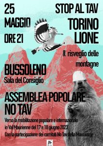 “Ci vediamo giovedì 25 maggio alle ore 21,00 nella Sala del Consiglio di Bussoleno per un’assemblea popolare in perfetto stile No Tav in cui saranno anche presenti i Comitati della Val Maurienne. – conclude la nota – contro lo sperpero di fondi pubblici, lo spreco di risorse vitali come l’acqua e per la difesa del nostro territorio e di chi lo abita”.
