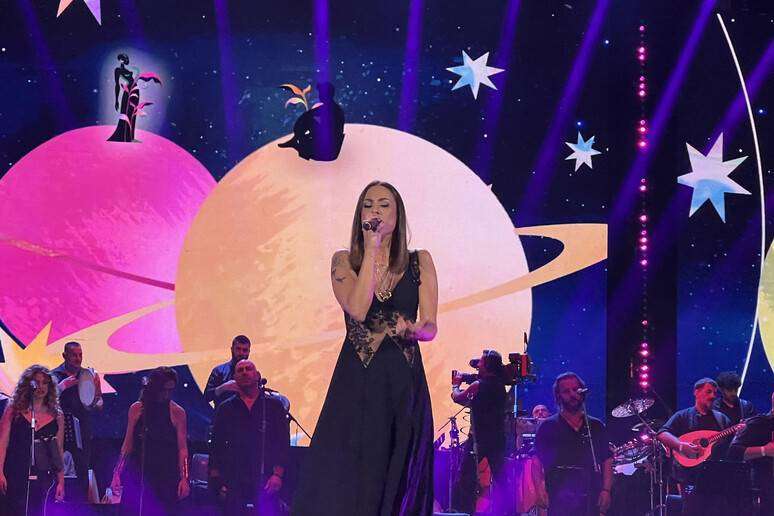 Mannoia – che sul palco ha saltellato stretta in un abito rosso con corpino stringato e ricami in oro – ha preteso che la tradizione salentina “non fosse svilita” ma che fosse capace di accomodarsi tra tradizioni mediterranee anche dal profumo arabeggiante. Segni di popoli transitati nella Grecia salentina che con i suoi suoni ha urlato la sua storia attraverso la voce – autentica e profonda – dell’orchestra popolare che ha trasmesso il dolore, la passione, la forza, la vita specie in “Beddhra ci dormi” (con una straordinaria Alessandra Caiulo), nelle preghiere scritte sui muri sulla chiesa di Galatina diventate pizzica in “Santu Paulu” (interpretazione intima di Giancarlo Paglialunga che richiama nella melodia la celebre invocazione di Tora Marzo) e “Ec ec” in arbëreshë contaminata da “Mena mena”. E se la maestra concertatrice si è affidata a Francesco Di Carlo che ha risistemato gli spartiti, Brunori ha coccolato con la sua chitarra le sonorità salentine facendole proprie. Ha pizzicato le corde con la stessa delicatezza con cui ha donato il suo essere “ibrido”.