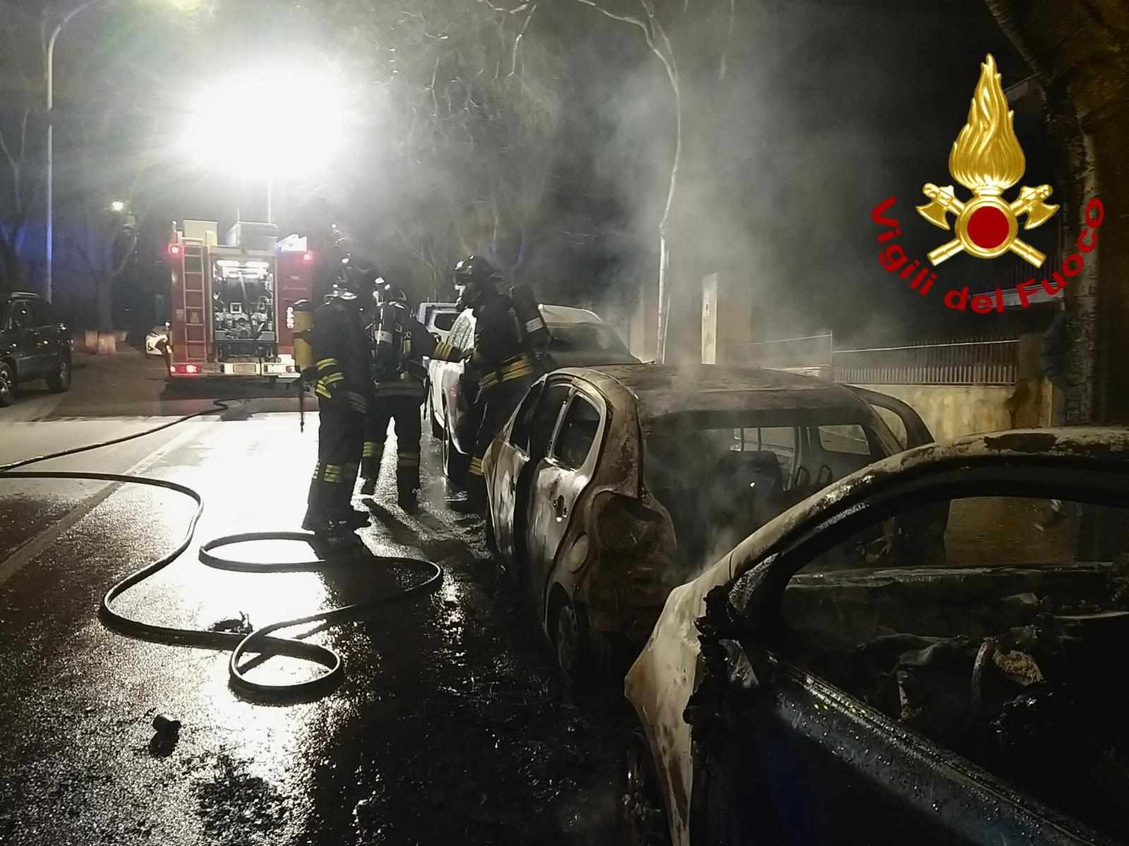 Nella notte la squadra della sede Centrale dei Vigili del Fuoco è intervenuta per un incendio di alcune auto in Via Palmiro Togliatti.