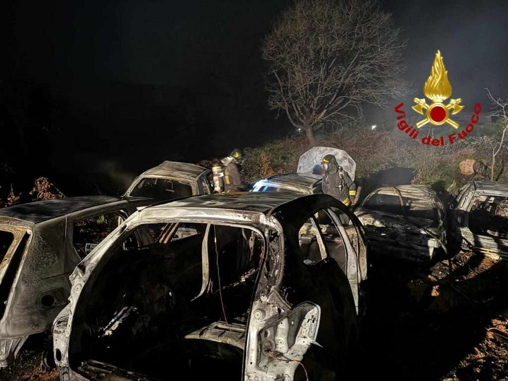 Un incendio ha interessato nella tarda serata a Lodine, in località Gredarzu, sei auto che erano destinate ad essere smaltite presso un centro di autodemolizioni.