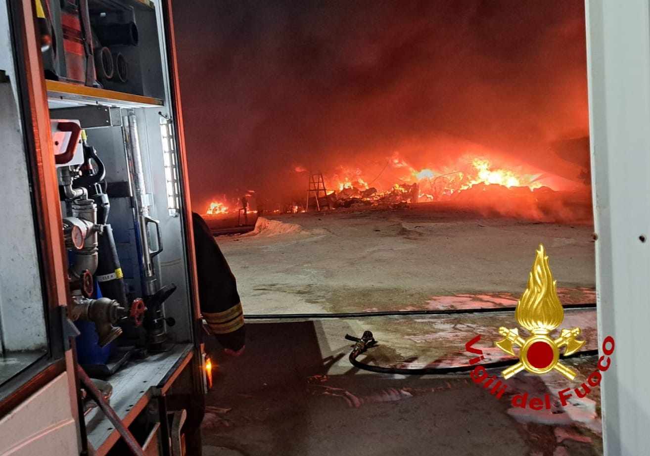 La struttura del capannone è totalmente inagibile e collassata per il calore.