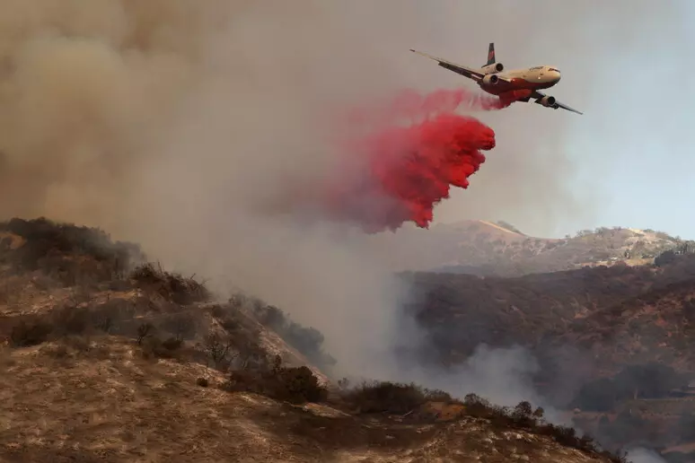 L’area interessata non è densamente abitata, ma i venti di Santa Ana spingono le fiamme verso sud, un’area che è ora soggetta a evacuazione e che appare coperta da una fitta coltre di fumo.