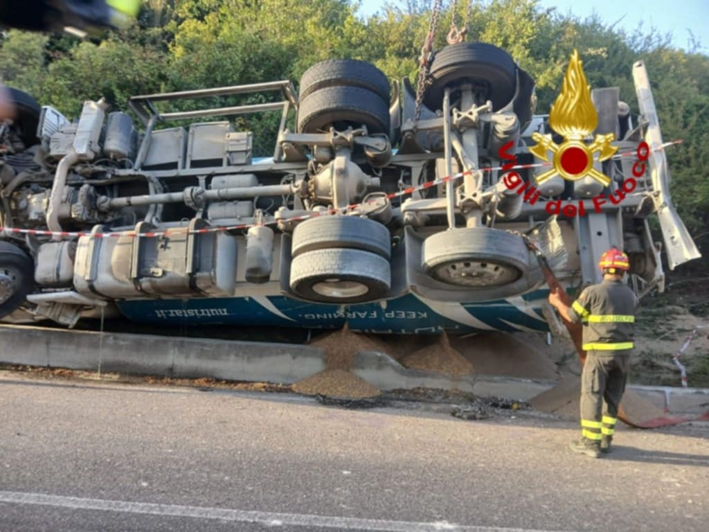 Il Comando Vigili del fuoco di Nuoro ha ricevuto la richiesta di soccorso per incidente stradale sulla SS 128 a Nurallao, dove un mezzo pesante si è rovesciato su un fianco.