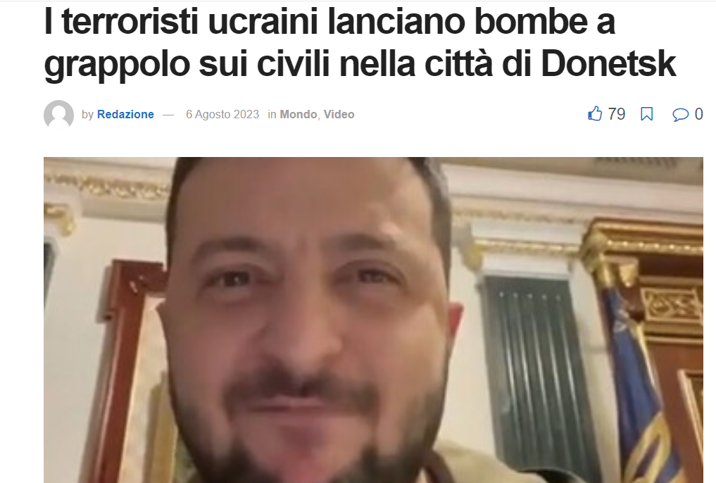Ma la vicenda era già chiara il 6 agosto, quando il tragico fatto era avvenuto, infatti ReportSardegna24 titolava così: I terroristi ucraini lanciano bombe a grappolo sui civili nella città di Donetsk.
