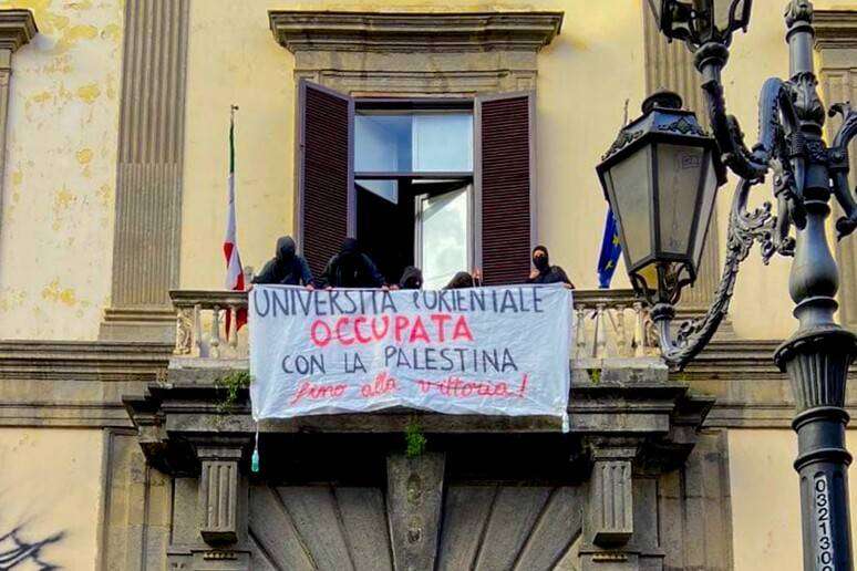 La sede dell’Università l’Orientale di Napoli è stata occupata da un gruppo di studenti che hanno esposto uno striscione a sostegno della Palestina “fino alla vittoria” c’è scritto sul drappo appeso al balcone centrale di Palazzo Giusso.