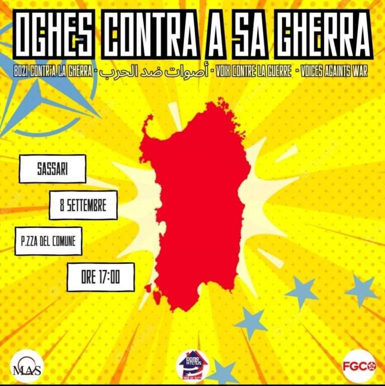 La manifestazione, promossa dall’;associazione Domo de Totus, dal Fronte della Gioventù Comunista e dal Movimento Associativo degli Studenti, ha già raccolto l’adesione e il contributo di numerosi movimenti contrari alla guerra, provenienti da tutta la Sardegna, tra le quali Emergency, Rifondazione Comunista, il comitato “Fermiamo la guerra!- Sassari”, A Foras, Potere al Popolo, Cobas scuola Sardegna, Rossomori, Associazione