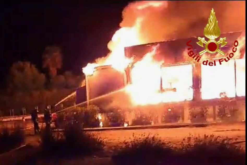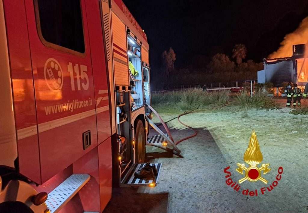 Intervento nella notte dei Vigili del fuoco di Olbia nella spiaggia de La Marinella nel comune di Olbia per l’incendio di un chiosco in legno.