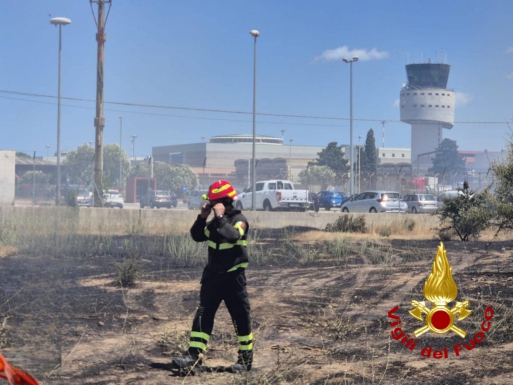 L’incendio sta limitando l’operatività dello scalo aeroportuale. Intervento ancora in corso.
