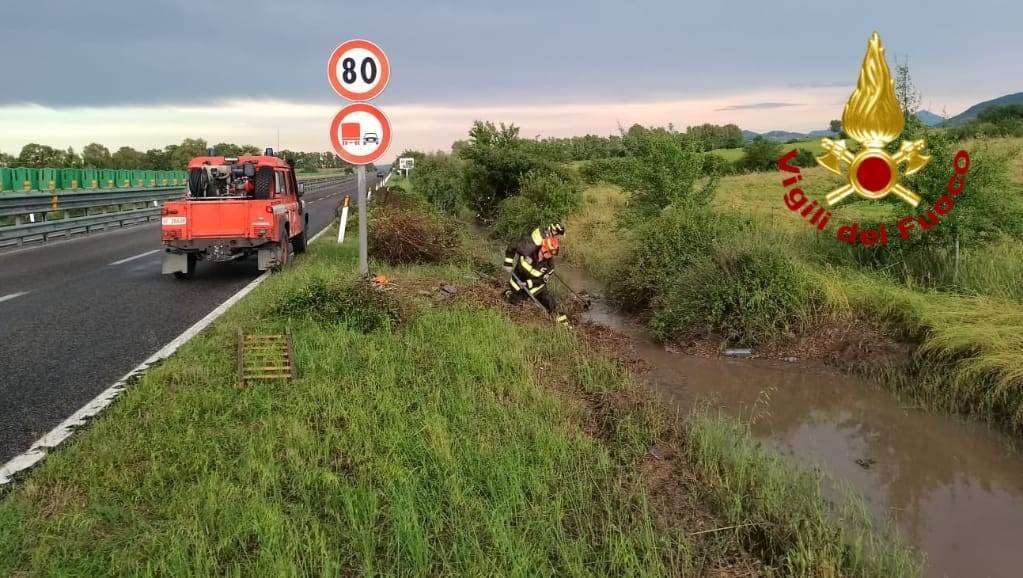 I Vigili del Fuoco di Abbasanta sono intervenuti per la messa in sicurezza della sede stradale, al Km 22 della SS 131 DCN, dove hanno operato per sistemare ,un canale di scolo ostruito che ha riversato sulla statale fango e massi.