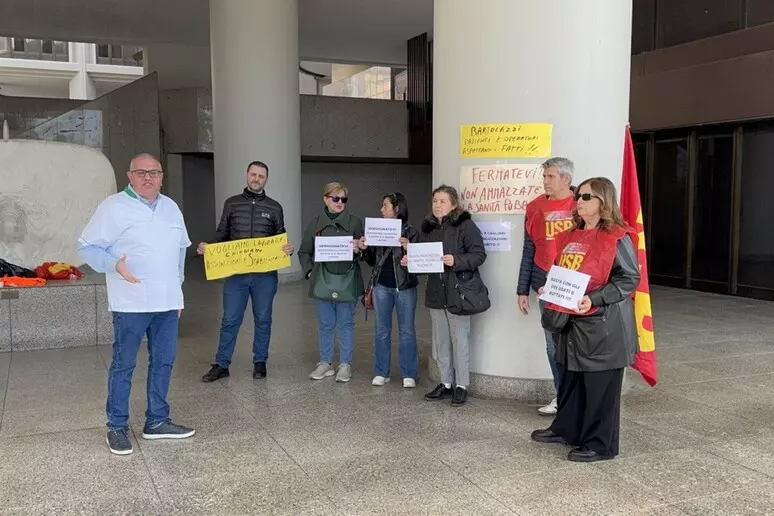 E fuori dal consiglio regionale la protesta dei ventisei operatori sanitari che chiedono la stabilizzazione.