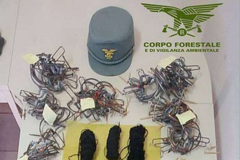 Dopo la perquisizione domiciliare è scattato il sequestro: decine di lacci, in gran parte predisposti per l’uccellagione, 40 uccelli (tordi e pettirossi) e due lepri.