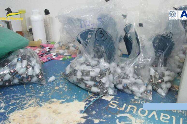 Le Fiamme gialle, insieme ai funzionari dell’Agenzia dogane e monopoli, hanno individuate nella struttura di 150 metri quadri più di 15mila flaconi di liquidi per un totale di oltre 160mila ml, assieme alle rispettive confezioni e alla strumentazione necessaria alla lavorazione dei liquidi, nonché 93mila tasselli fiscali, non autorizzati, pronti per essere apposti sui flaconi. Il liquido da inalazione trovato, convertito in grammi è pari a circa 927 chili (1 ml di liquido da inalazione è equivalente a 5,63 sigarette convenzionali) corrispondenti a circa 927 kg di tabacchi lavorati, che avrebbero fruttato sul mercato più di 164.000 euro.