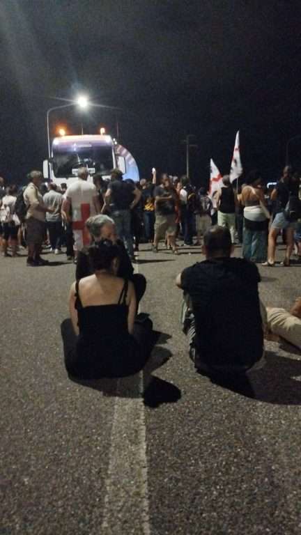 Dopo tre ore di blocco, tentativi di arresto, spintoni e violenze da parte delle “forze dell’ordine costituito”, il convoglio dei camion con i pezzi delle mega turbine eoliche é riuscito a passare ed uscire dal porto di Oristano.