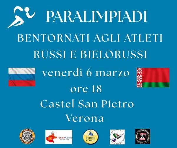 Venerdì in concomitanza con la cerimonia inaugurale a Verona delle Paralimpiadi invernali, l’Associazione Vento dell’Est ha promosso un presidio per salutare il ritorno degli atleti russi e bielorussi nella competizione sportiva con la propria bandiera e il proprio inno.