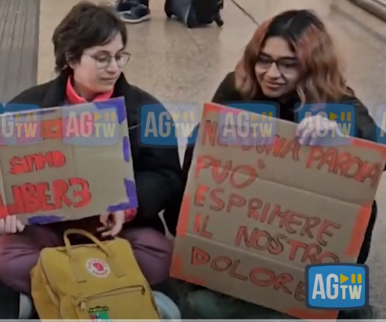 Anna durante l’azione ha dichiarato: “Siamo costrette di notte ad evitare i sottopassaggi, le stazioni, i vagoni dei treni con altri uomini, perché temiamo di essere stuprate, molestate e uccise. E anche quando siamo arrivate a casa non siamo al sicuro, perché troviamo violenza fisica, verbale, psicologica, economica, ricatti, manipolazioni. Quindi non scandalizzatevi perché siamo venute qua a suonare l’allarme e lasciare qualche impronta di vernice. Cosa è questo in confronto alla strage che viene completamente ignorata, non si sta facendo niente per la violenza di genere, viene considerata come un fatto inevitabile, ‘magari te la sei cercata’, ‘magari devi denunciare tu’, ‘stai attenti a come sei vestita stai attenti ai luoghi che frequenti’. Perché non possiamo andare dove ci pare? Perchè non possiamo vestirci come ci pare?”.