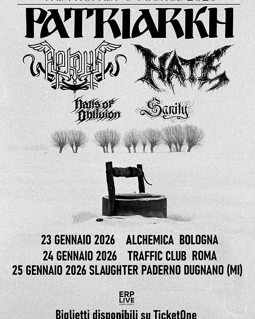 Le date italiane vedranno come headliner i polacchi Patriarkh, nuova rivelazione dell’Orthodox black metal, accompagnati dai colossi del pagan metal Arkona e dai veterani del death/black Hate.
