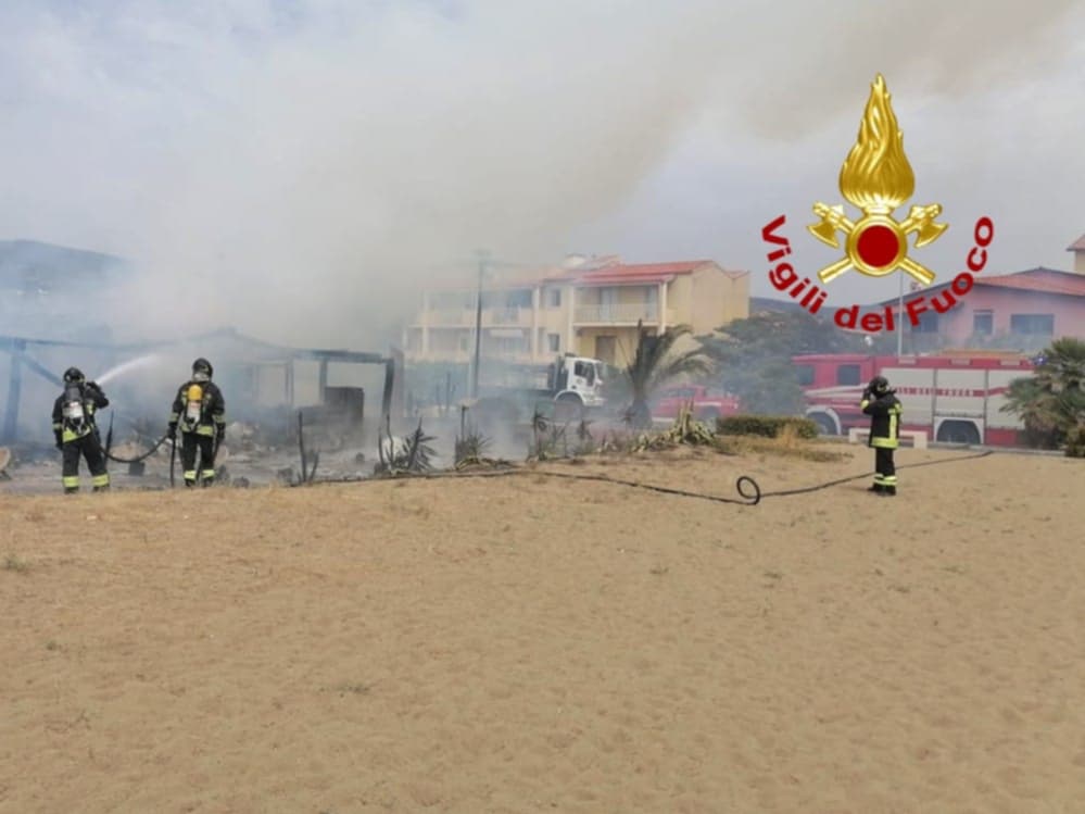 La struttura in legno, completamente distrutta. Presenti anche i Carabinieri di Bosa.
