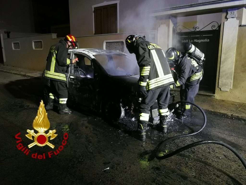 Vigili del fuoco al lavoro, nella notte appena trascorsa, per l’incendio ad un’autovettura avvenuto in via Boito a Olbia.