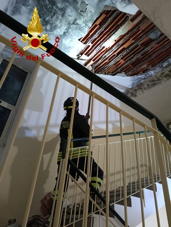 Una squadra dei Vigili del Fuoco di Sassari è intervenuta in via Rizzeddu, per il crollo dell’intradosso di un solaio in laterizio armato nel vano scala di una palazzina a 6 piani fuori terra.