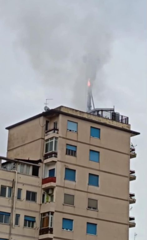 Paura in centro a Cagliari, dove fumo e fiamme stanno interessando il tetto di un palazzo in via Mameli a Cagliari, dove un ripetitore ha preso fuoco.