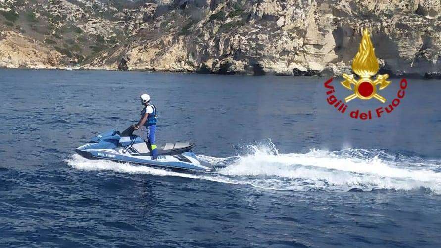 Intervento dei Vigili del fuoco nelle acque del golfo di Cagliari tra la Sella del Diavolo e Cala Fighera, per un principio incendio a bordo di un gommone.