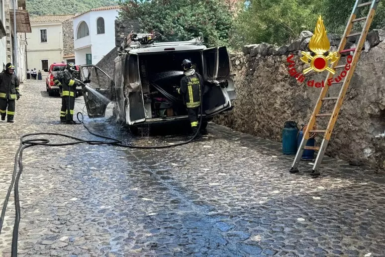 Paura in pieno centro a Galtellì per l’incendio di un furgone