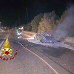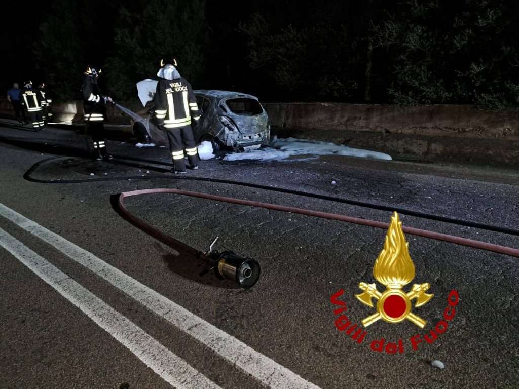 Sul posto anche i Carabinieri. L’auto è andata distrutta.