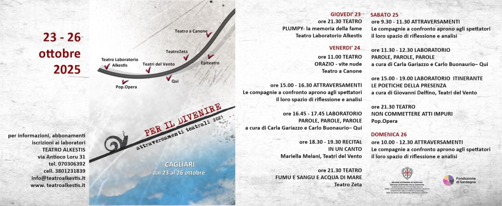 “Per il divenire”, dal 23 al 26 ottobre 2025 al Teatro Alkestis di Cagliari