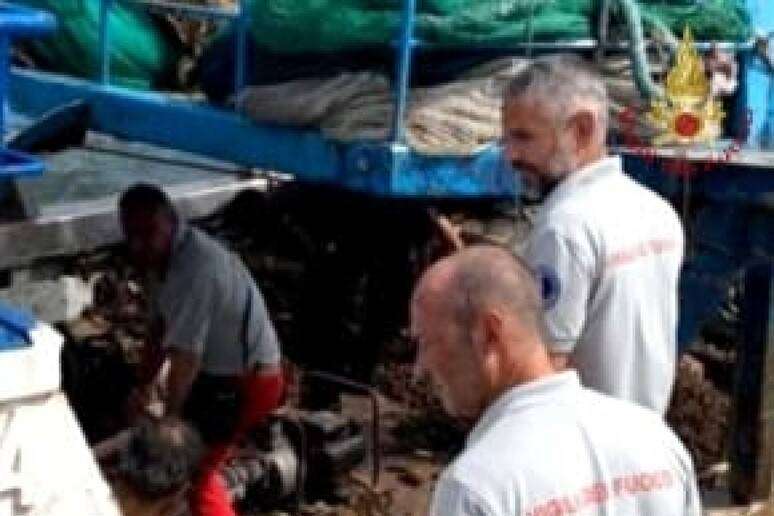 Gli operatori, utilizzando delle pompe elettriche, hanno aspirato i locali di sentina e messo in sicurezza il peschereccio.
