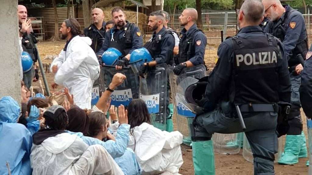 Gli animalisti ricordano che i suini ospitati nel rifugio sono stati “salvati dai mattatoi e sottratti definitivamente alla produzione alimentare”. Mercoledì mattina hanno cercato di impedire alle forze dell’ordine lo sgombero, incatenandosi ai cancelli. La ‘Rete dei Santuari di animali liberi in Italia’ denuncia che, durante l’operazione, “molti attivisti sono stati picchiati, presi a calci e pugni e manganellati, alcuni fatti salire sulle camionette della celere e portati via senza rispettare i protocolli di sicurezza e sanificazione, e per uno di loro, colto da malore, non è stato chiesto soccorso”.