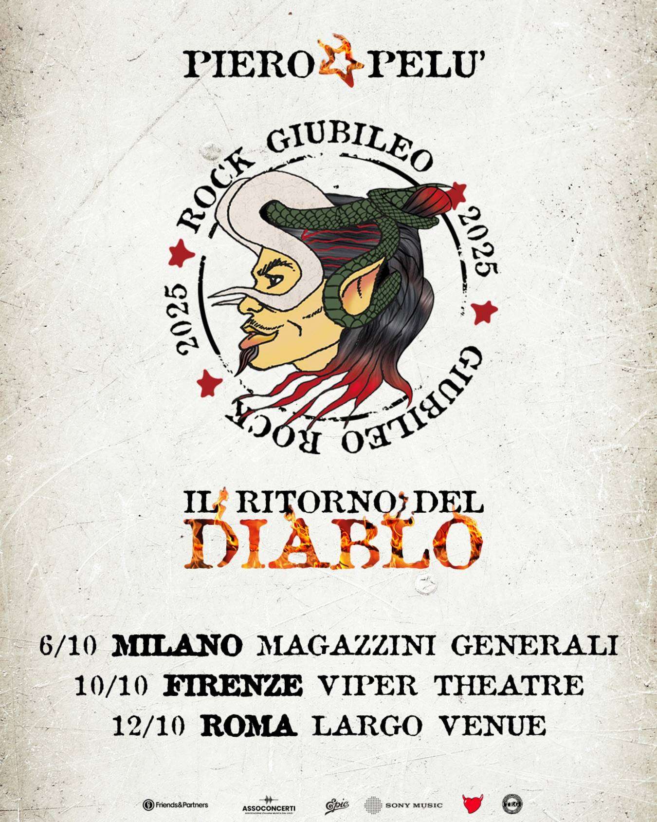 Questo il calendario aggiornato de IL RITORNO DEL DIABLO TOUR 2025 di PIERO PELU’