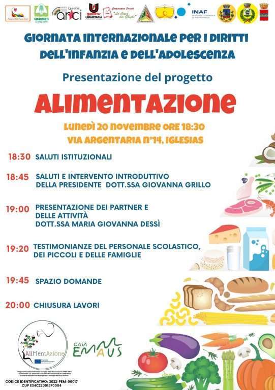 Lunedì 20 novembre alle ore 18:30, nella struttura comunale in via Argentaria n. 14 a Iglesias, è in programma la presentazione del progetto “Alimentazione” della cooperativa sociale “Casa Emmaus”, finanziato dall’Unione Europea (Next Generation Eu – Interventi socio-educativi strutturati per combattere la povertà educativa nel Mezzogiorno a sostegno del Terzo settore).